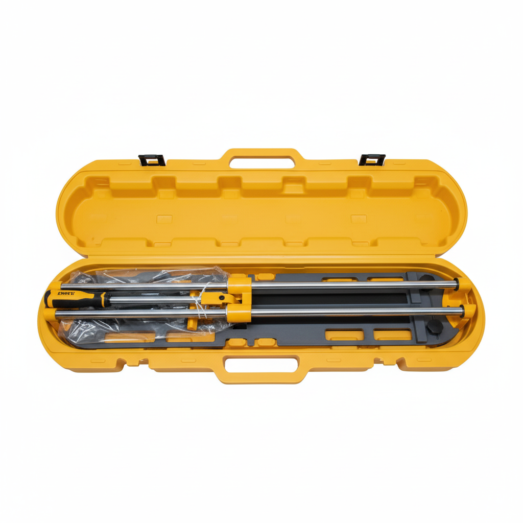 Carrelette manuelle compacte avec rails métalliques doubles pour une meilleure stabilité et une coupe précise. Elle comprend une poignée ergonomique et un étui solide pour un transport et un rangement faciles. Idéale pour découper carreaux de céramique, porcelaine, ou faïence sur des chantiers ou pour des travaux à domicile.