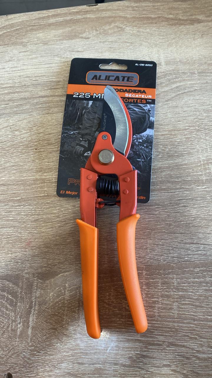 Sécateur professionnel ALICATE de 225 mm avec lame courbe, conçu pour les travaux de jardinage et d'élagage intensifs. Cet outil de coupe de qualité professionnelle offre une précision et une durabilité exceptionnelles pour l'entretien de votre jardin.